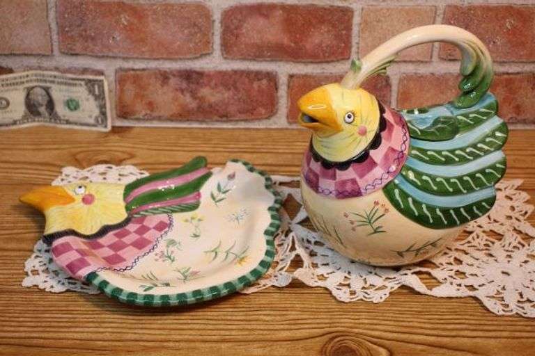 LOT 247 - Fitz & Floyd Tea Pot and Matching Dish - Lot of 2 (S5)