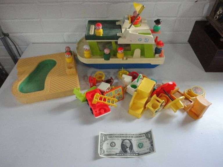 LOT 054 - VINTAGE FISHER PRICE BOATHOUSE WITH PEOPLE