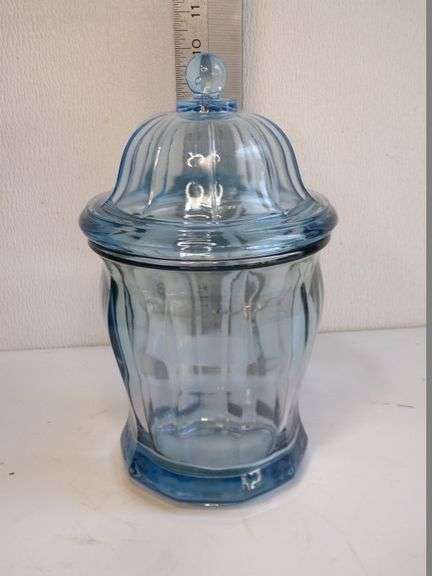 LOT 282 - Really pretty vintage Indiana glass apothecary jar/canister and lid