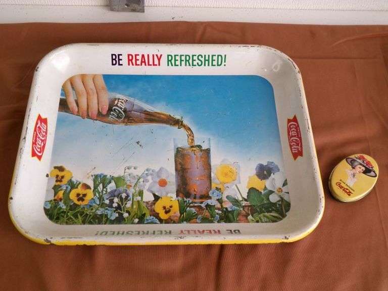 LOT 183 - Vintage Coca-cola tray and small travel sewing kit tin with thread, tape, etc. inside