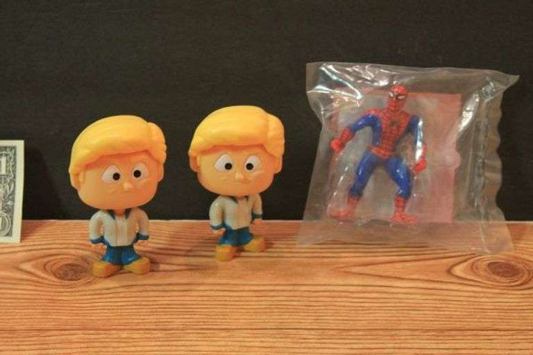 LOT 408 - 2021 McDonald's Happy Meal Toy Scooby Doo Fred Bobble Head and Spiderman in Package. BS5