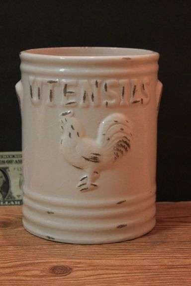 LOT 224 - Farmhouse Rooster Utensil Holder, 7" x 7 1/2". WB1