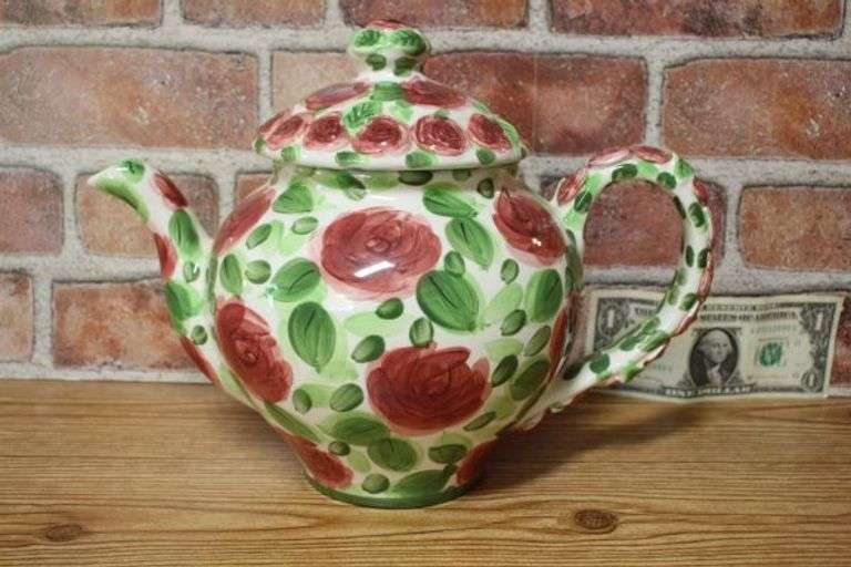 LOT 135 - EMILY ROSE Porcelain Tea Pot - by Don Swanson - Hand Painted Roses Inside and Out - See Addl Pics (W3)