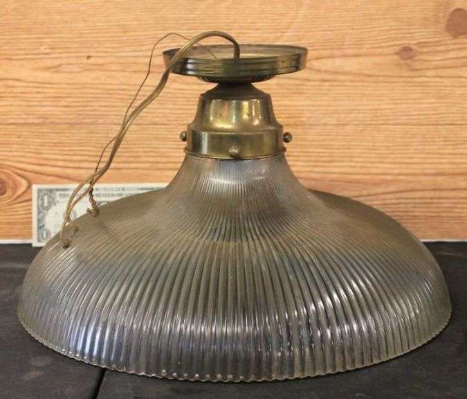 LOT 634 - Holophane Glass and Brass Light Shade 15" in Diameter and a Ceiling Fan Globe. (BMS)