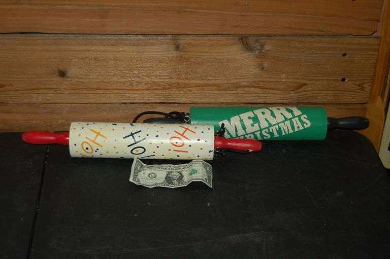 LOT 631 - SET OF 2 WOODEN CHRISTMAS THEMED ROLLING PINS