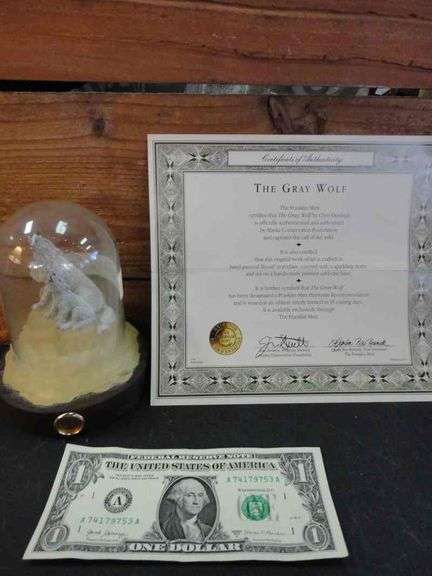 LOT 250 - THE FRANKLIN MINT THE GRAY WOLF WITH GLASS DOME COVER