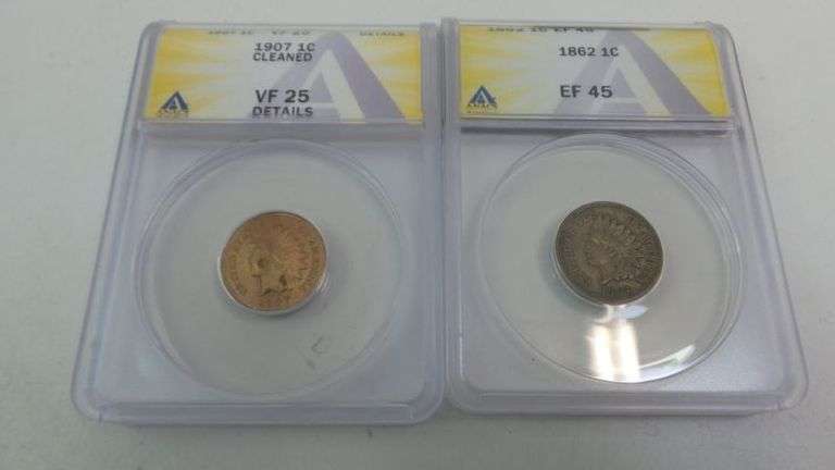 LOT 022 - $ 1907 VF25 Cleaned AND 1862 EF 45 Indian Head Pennies! (DC)