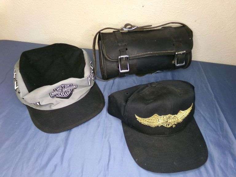 LOT 277 - Harley Davidson caps and leather tool bag (B)