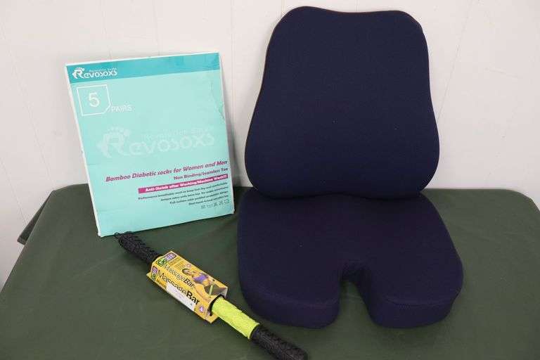 LOT 213 - NEW 2pc Super Comfy Seat Cushion Set, 5-Pair Set of Bamboo Diabetic Socks AND GoFit Massage Bar! (T7)