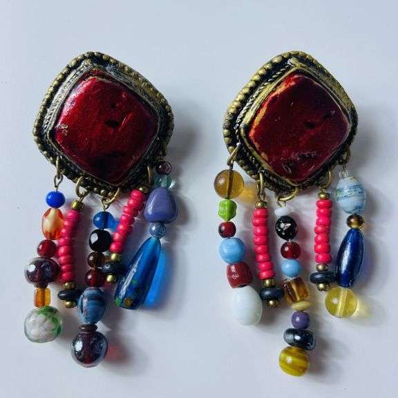 LOT 081 - Vintage Handmade Clip on Multicolored Earring Signed Mark Hedges 4”
