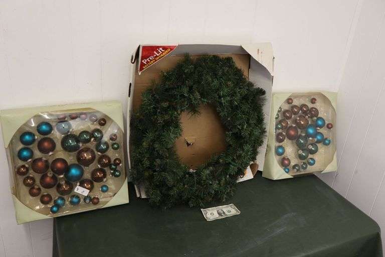 LOT 765 - NEW Wreath & Lot of Glass Christmas Ornaments! (ES2)