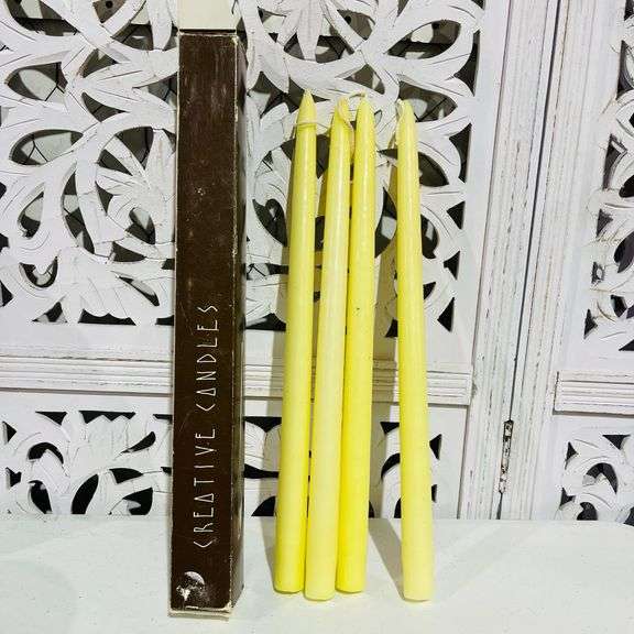 LOT 040 - Set of 4 creative yellow candles NEW never used. 16” H