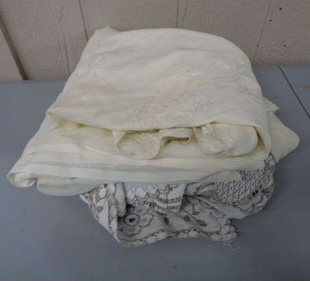 LOT 472 - 2 Table Cloth / 2 Lace Curtain Panels.. ** cash only**. ( area 6)