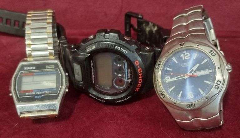 LOT 042 - Lot of 3 Watches including a TimeX a Citizens and a damaged G-Shock