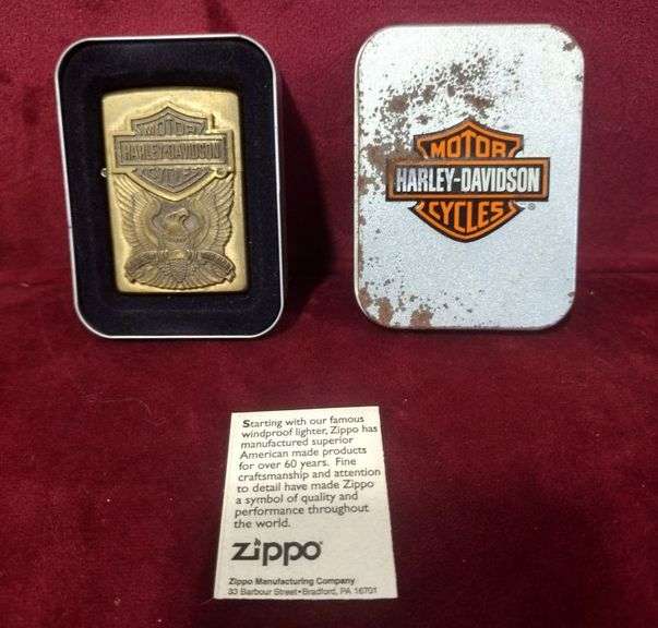 LOT 033 - Zippo XIV Harley Davidson Lighter 98' Brass Lighter in original logo'ed metal case box - made is USA
