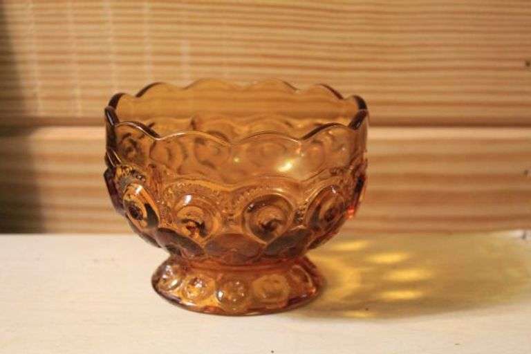 LOT 038 - Vintage L. E. Smith Amber Moon & Stars 6" Candy Dish. W6