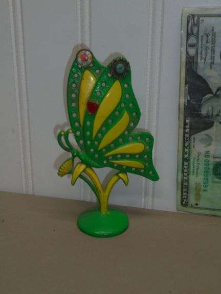 LOT 318 - Vintage 1960's LIBBY Metal Butterfly Earring Holder w/ 3 Earrings. See add pics.
