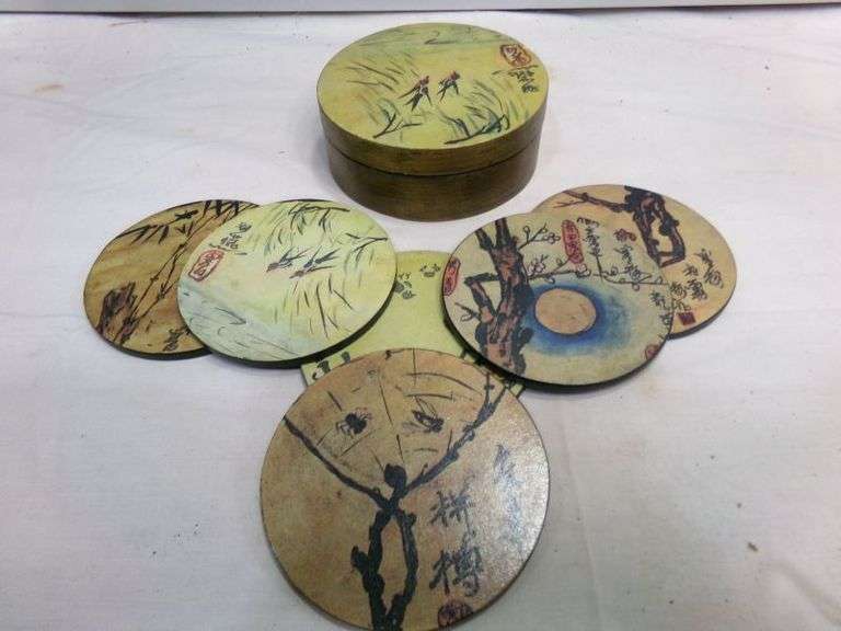 LOT 314 - Set of 6 - Pier 1 wooden Chinese Coasters in excellent condition