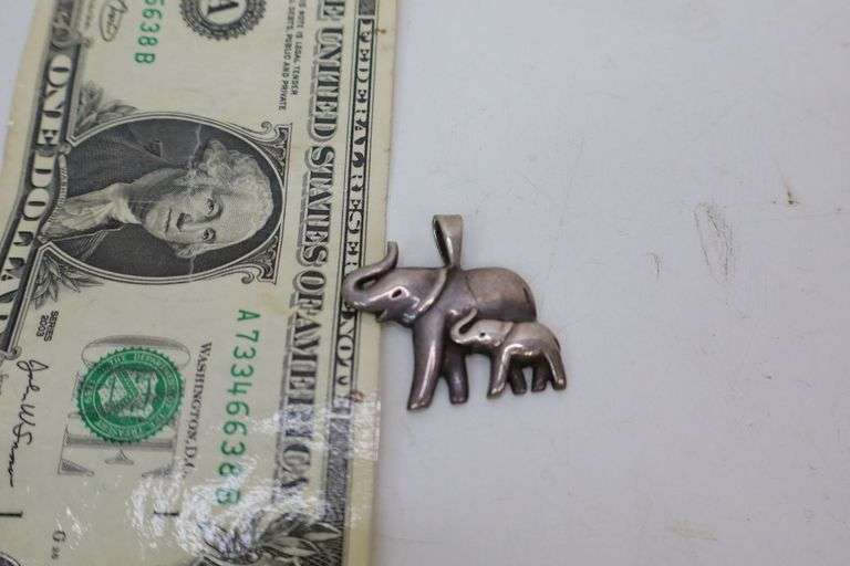 LOT 039 - Heavy Sterling Silver Elephant Pendant! 7.9 Grams (DC)