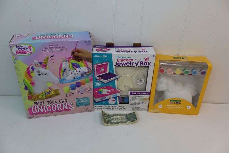 LOT 105 - Lot of THREE Assorted Paint Your Own Unicorn Sets! (3E)