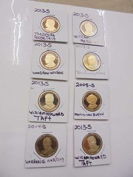 LOT 100 - Lot of 8 Gold Tone Presidential $1 Coins. 2008-2014