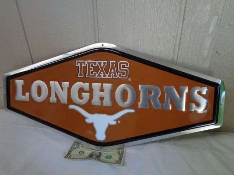 LOT 144 - Longhorns Metal Wall Hanging. ** cash only **. ( row 1)