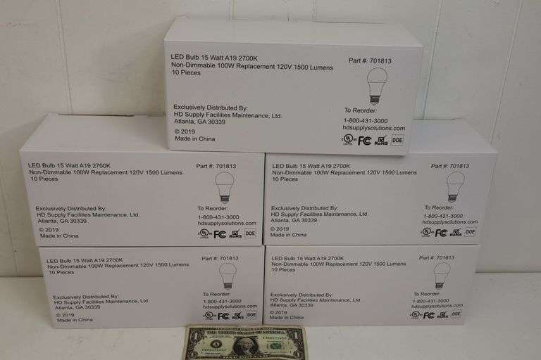 LOT 070 - NEW Lot of FIVE 10-Count Cases of LED 100W Replacement Light Bulbs! (4D)