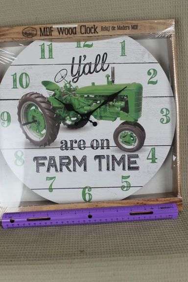 LOT 047 - CASH ONLY New Wooden Clock " Y'all Are on Farm Time" (L3-3)