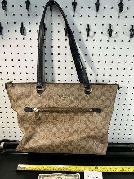 LOT 065 - Coach Brown/Tan Signature Purse Zip Top and Front Pocket-Very Clean!!13x11x6