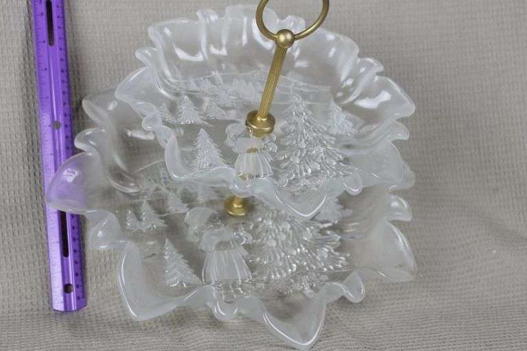 LOT 083 - CASH ONLY Vintage Mikasa Crystal Christmas Serving Platter 2 Tiered - $ Look This Up$ (L3-2)