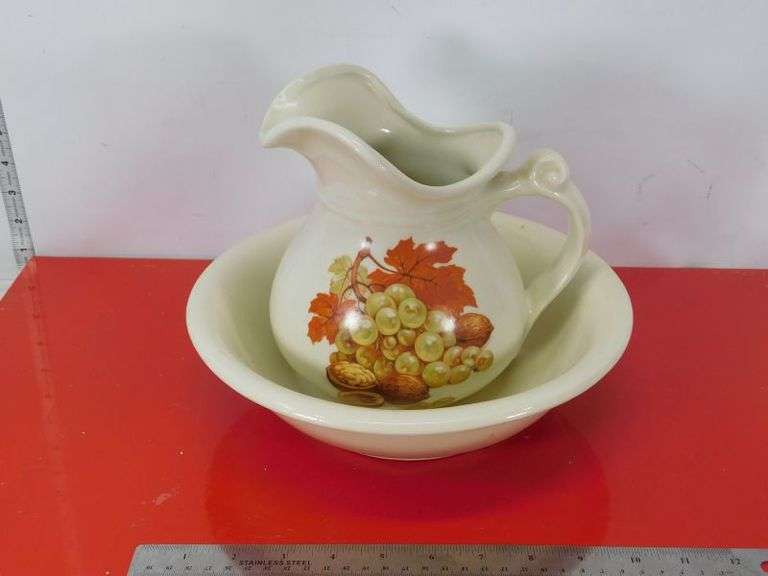 LOT 100 - Vintage McCoy Pottery Fruit Theme Pitcher