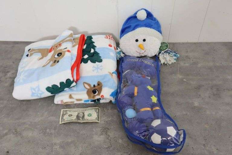 LOT 468 - NEW Doggie Toy Stocking & TWO Fleece Throw Blankets! (13D)