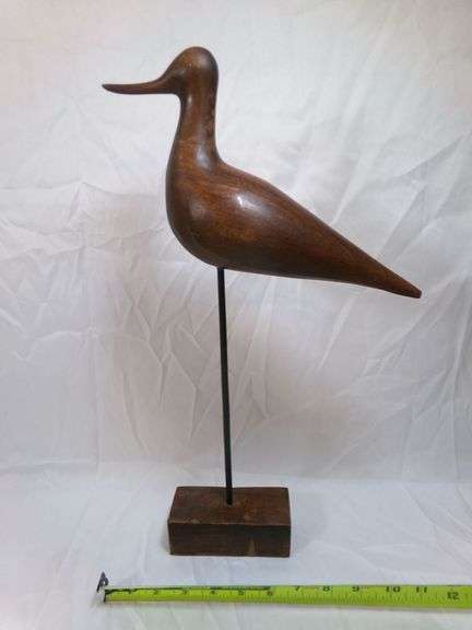 LOT 022 - Hand-carved wooden shorebird decoys mounted on wooden base 18" tall $$