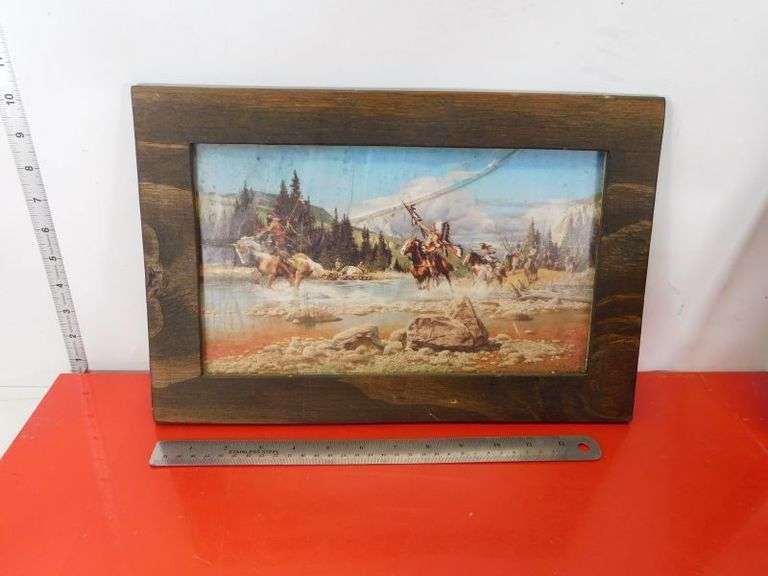LOT 010 - Indians Crossing River Wall Art - Man Cave-
