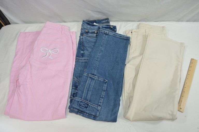 LOT 036 - 3 PAIRS OF JEANS - AMERICAN EAGLE, SIZE 000 & SHEIN, SIZE 26