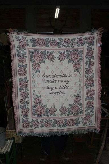 LOT 400 - Grandmothers make every day a little sweeter floral woven blanket - CASH ONLY