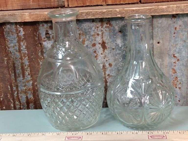 LOT 141 - Lot of 2 really cute vintage pressed glass vases