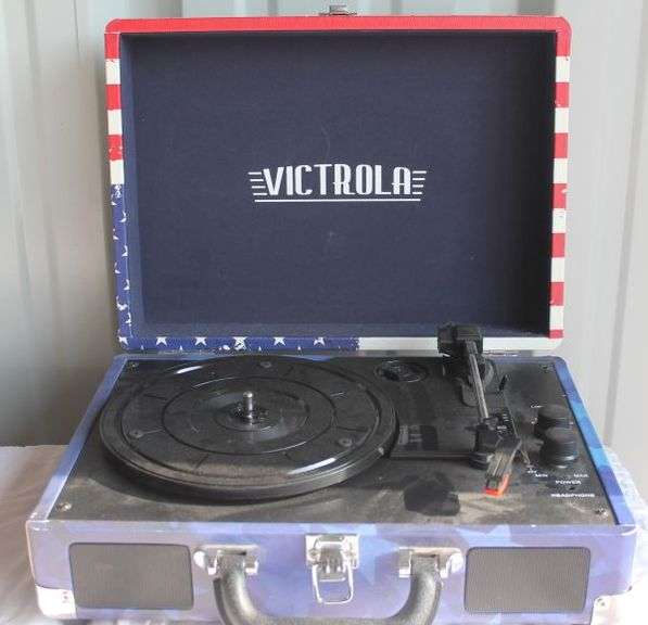 LOT 382 - Victrola Retro Suitcase American Flag Record Player, No Cord. S2F